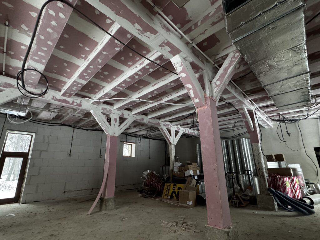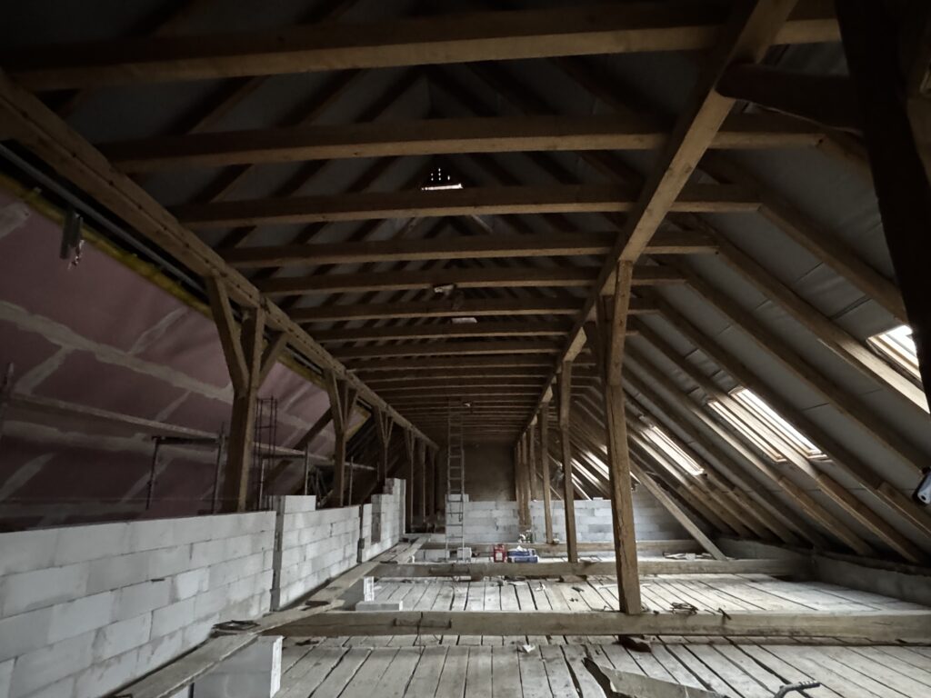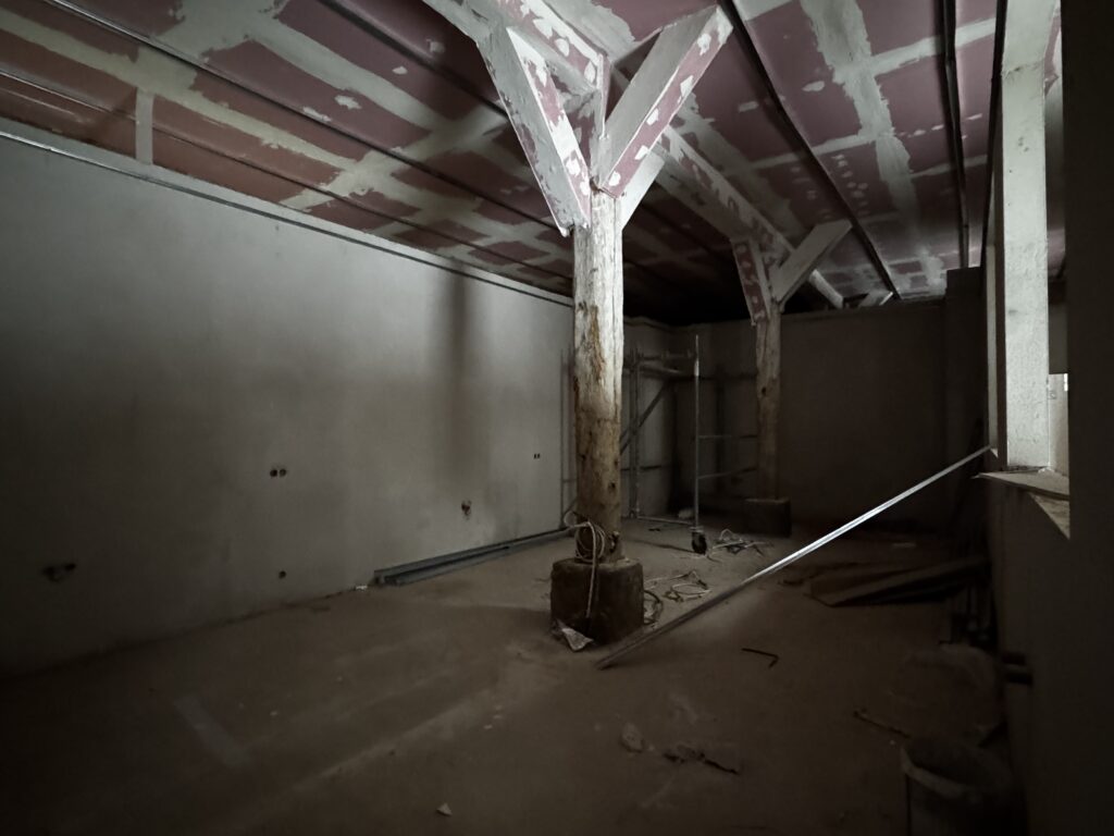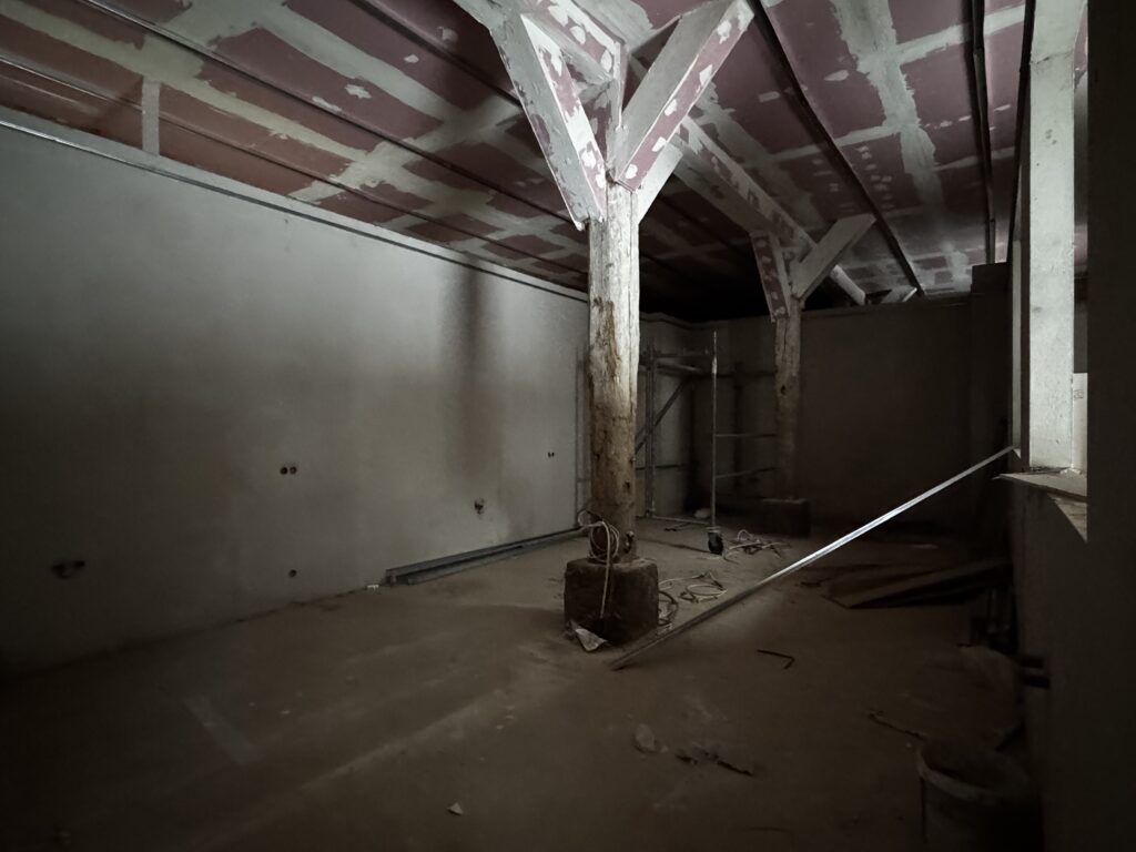 Nasza stara stodoła – przyszłe serce wydarzeń i spotkań – oraz pozostałe budynki folwarczne przechodzą właśnie wielką metamorfozę, i to wcale nie zimową! Podczas gdy na zewnątrz temperatura spada poniżej zera, w środku trwają prace, których na pierwszy rzut oka nie widać, a które są bardzo ważne dla całego naszego projektu ratowania tego miejsca, jakim jest Zespół Pałacowo-Parkowy w Targoszynie.