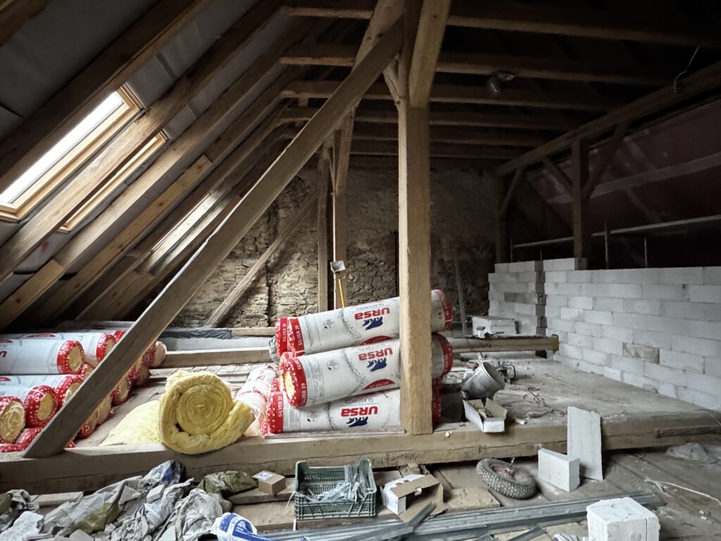 Kładziemy kilometry kabli i rur. To „układ nerwowy” i „krwionośny” budynku, który sprawi, że stodoła będzie nie tylko piękna, ale też funkcjonalna, ciepła i bezpieczna.